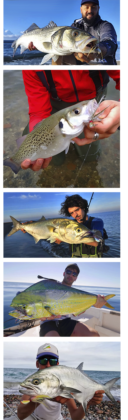 -El tamaño de un Jurela's Jig tiene un amplio abanico de tamaño de posibles capturas. Esto quiere decir que con un jig de 7 gr. por ejemplo, podemos capturar jurelitos de 100 gr., serviolas de medio kilo, llampugas de kilo, o lubinas de más de 1,5 kg. Los jigs tienen tamaño mínimo de captura, pero no máximo. -Adecua el tamaño y color de tus Jurela's Jigs al de los peces-presa de tu zona de pesca.